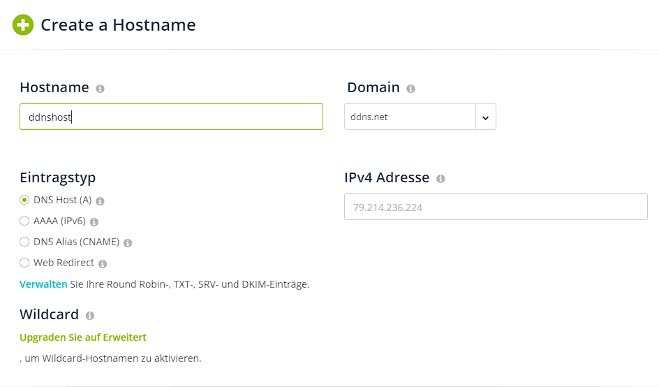 We need one DNS-Host (A-Record) for the DynDNS to resolve the IP.